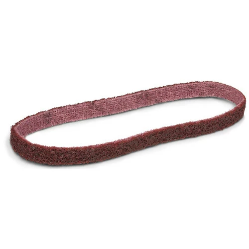 1/2 inch x 18 inch Surface Conditioning Sanding Belts for mini belt sanders and file sanders are made with flexible non-woven, nylon mesh fibers, impregnated with abrasive grains. These Conditioning belts are engineered to reduce heat buildup thus reducing the chance of damaging or discoloring the work material. Additionally, these surface conditioning belts resist loading which improves the finish and greatly extends the life of the belt. These belts are extremely durable and offer excellent flexibility for detail work around contours, edges, and irregular surfaces. The thin profile of these belts make them ideal for work within weld seams.These 1/2×18 non woven belts are the perfect option for cleaning, deburring, finishing or blending when minimal stock removal is required and the integrity of the work pieces is a high priority. These surface conditioning belts are particularly effective at corrosion removal, finishing stainless steel as well as creating a straight line brushed finish on a variety of metals and alloys. These 1/2” x 18” Surface Conditioning Belts come in coarse (tan), medium (red), fine (blue), and ultra fine (gray). BUILT IN USA.